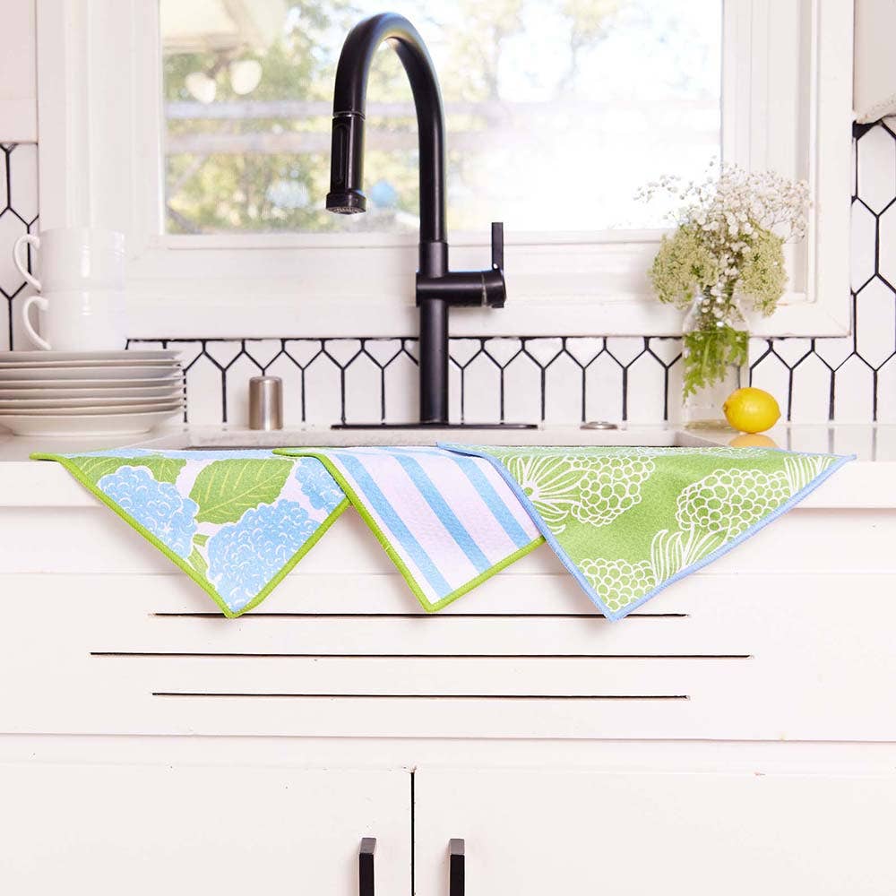 BLUE HYDRANGEA Dish Cloths, Set of 3