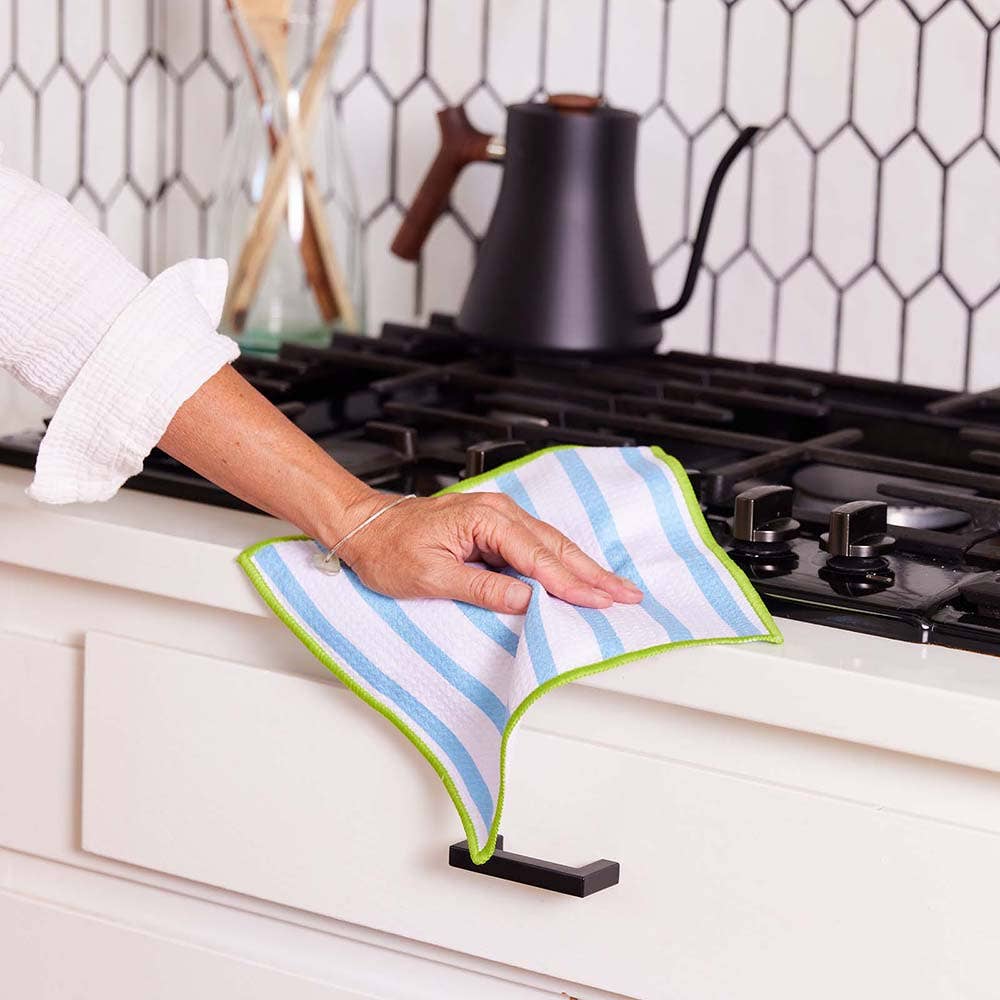 Uber-sustainable high-performance microfiber kitchen Dish Towels are made from 3 reused recycled plastic bottles. Mother Earth's best little helper!