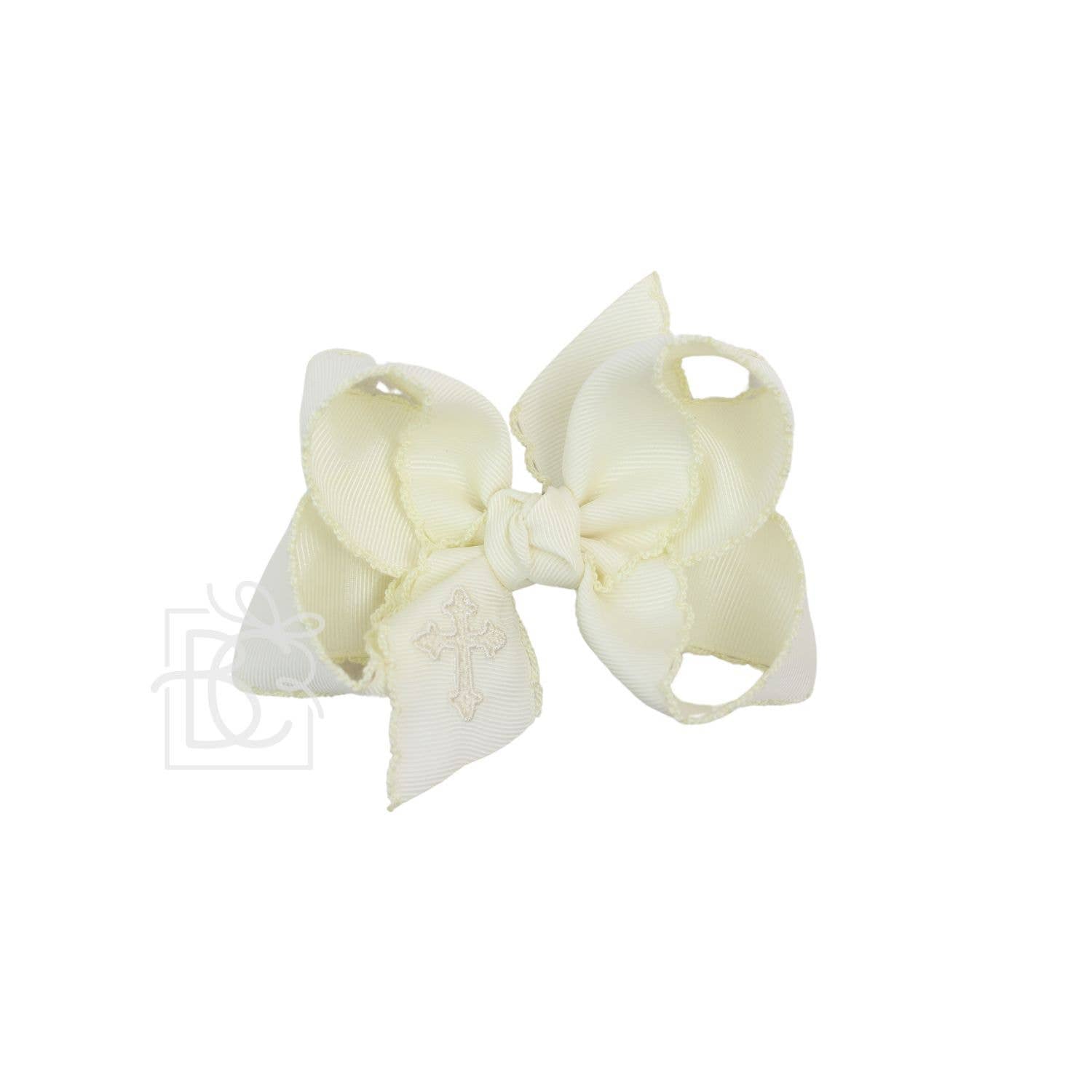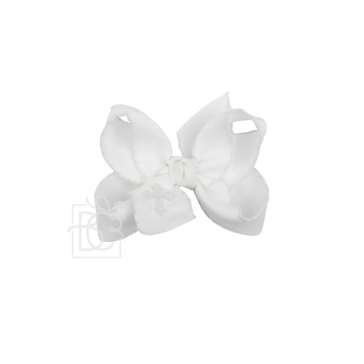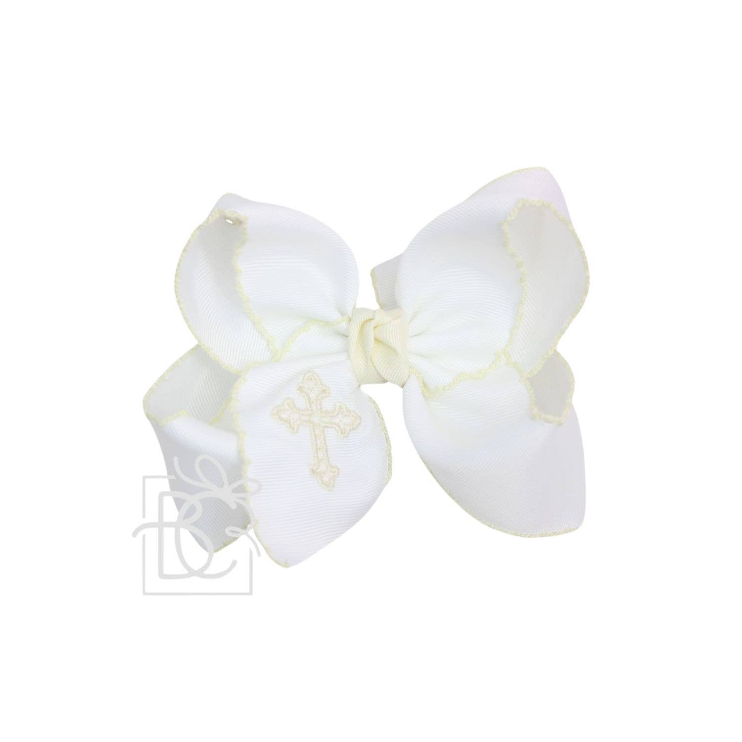 EMBROIDERED CROSS CROCHET EDGE BOWS: Antique white/ White / 4.5" Large Bow