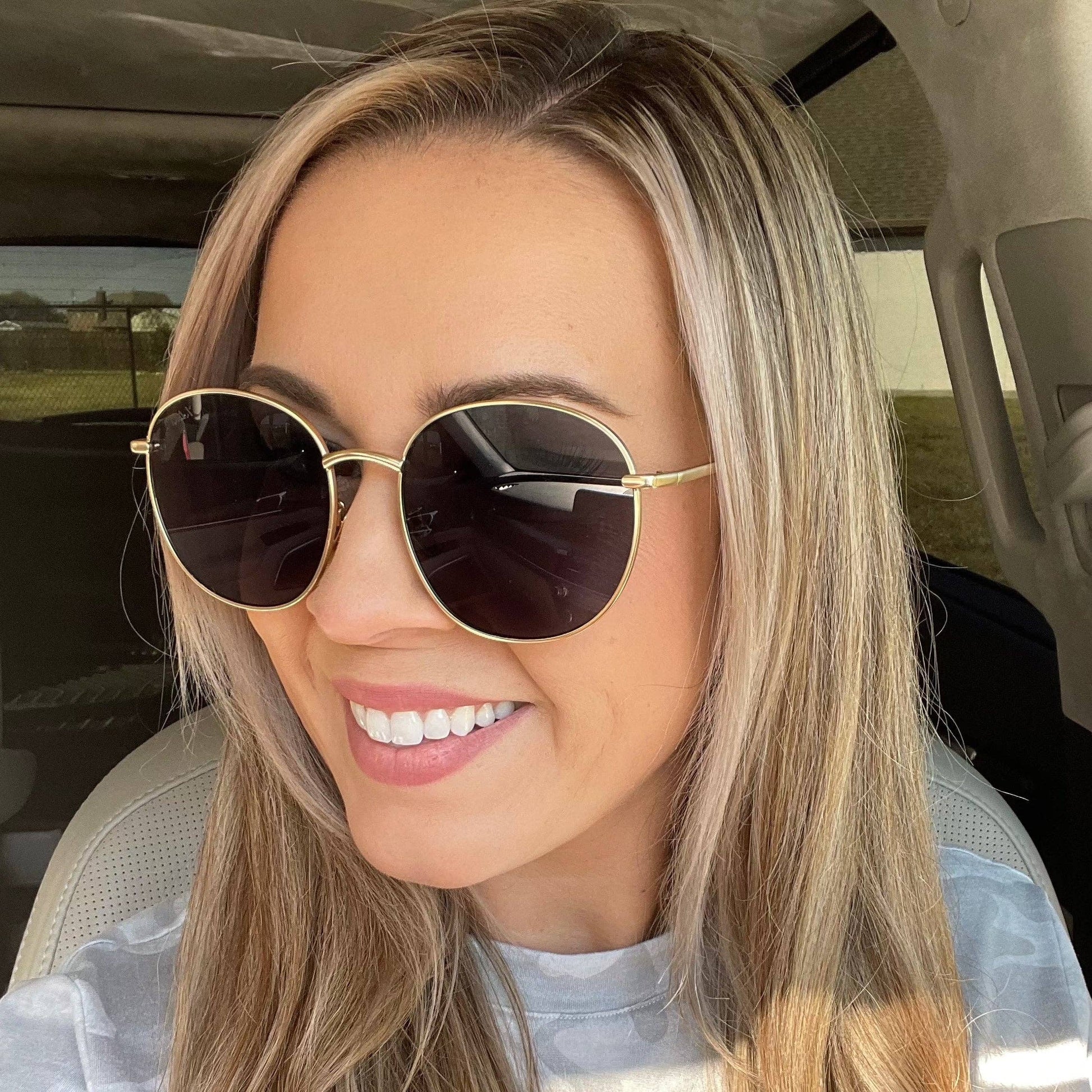 Experience unparalleled visual clarity with Georgie gold metal framed sunglasses. Crafted with premium materials, these sunglasses are designed to reduce glare and reflection while providing protection from the sun's harmful UV rays. Stylish and sleek, these shades will elevate your look to luxury levels!