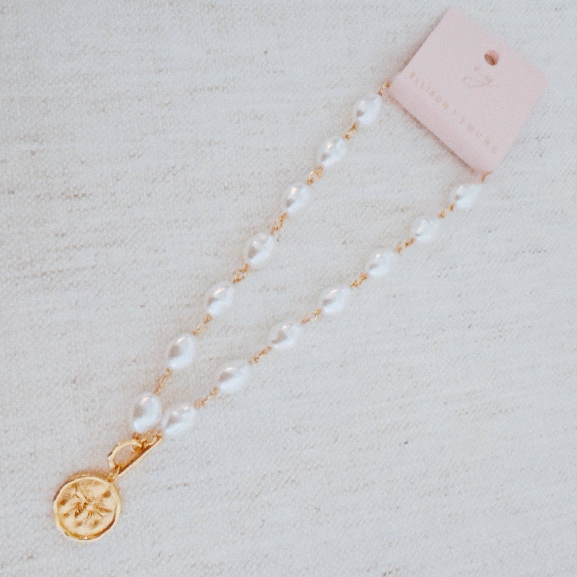 This chic necklace features a modern take on a classic baroque style, with a lovely golden bee design. Elevate your look with this elegant and timeless piece.