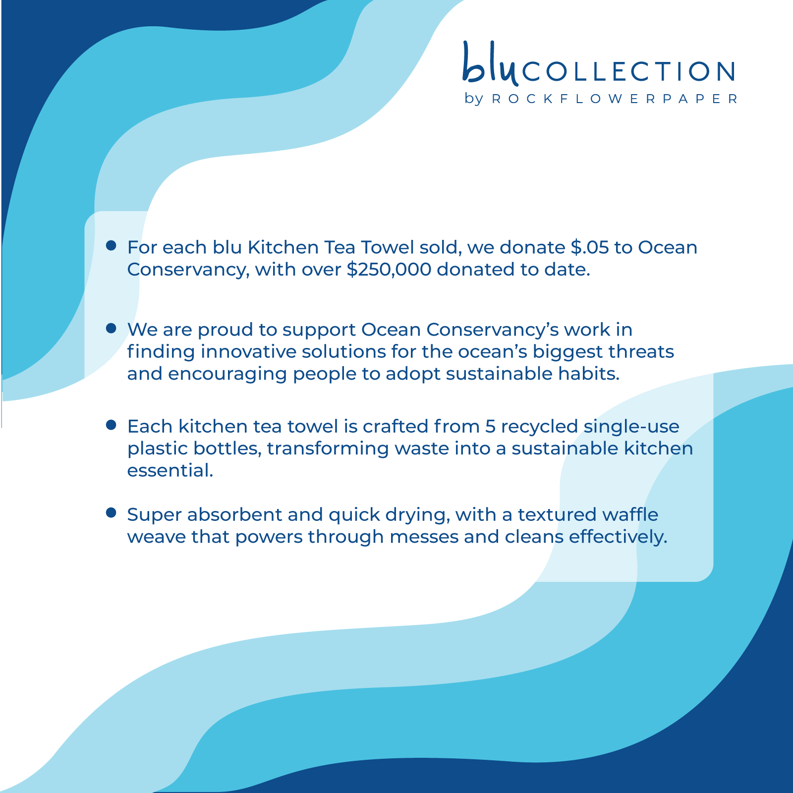 Part of our sustainable Blu Collection benefiting Ocean Conservancy. We donate 5 cents for every Tea Towel sold.