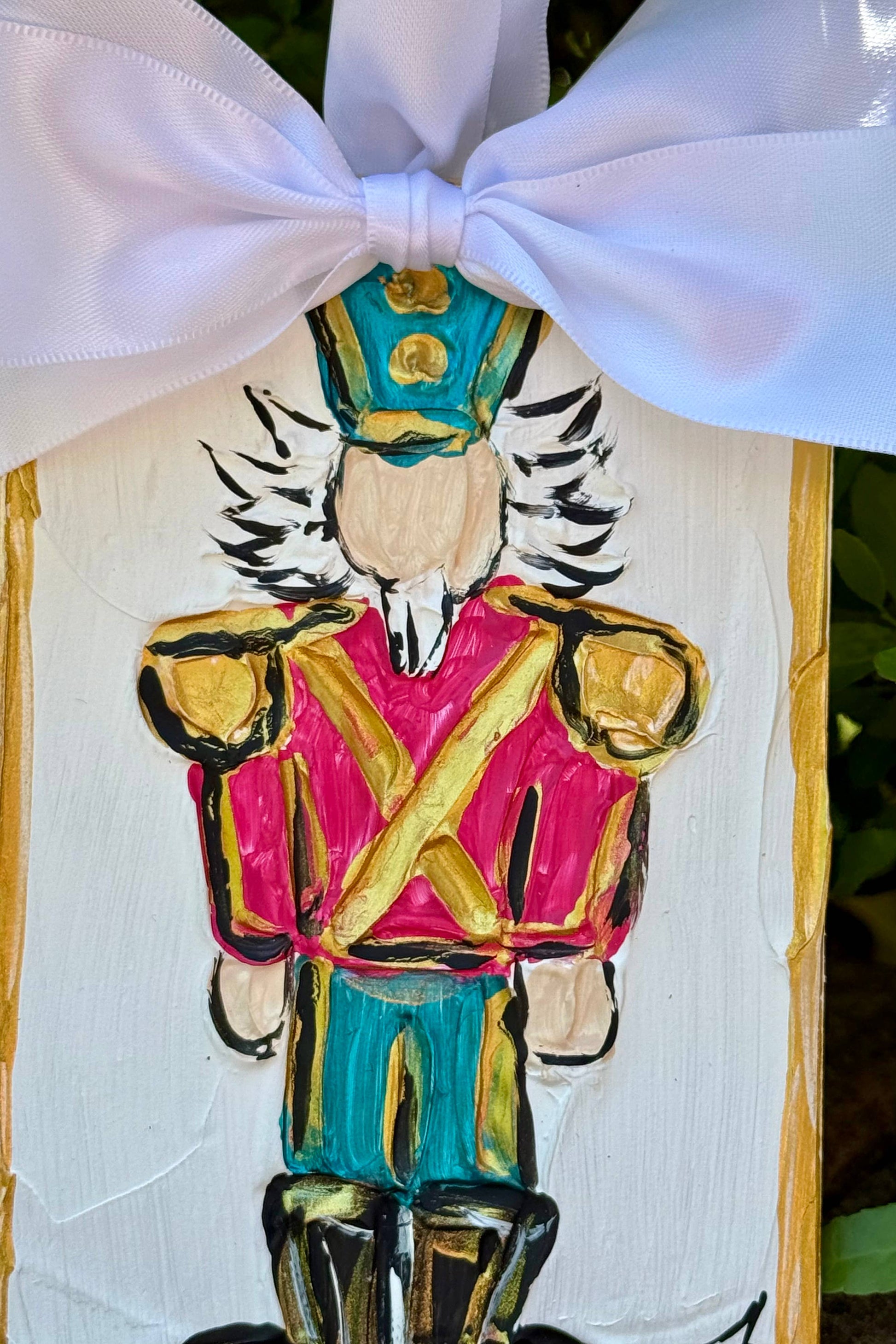 Nutcracker textured hand painted Christmas ornament : Hot pink/metallic cobalt