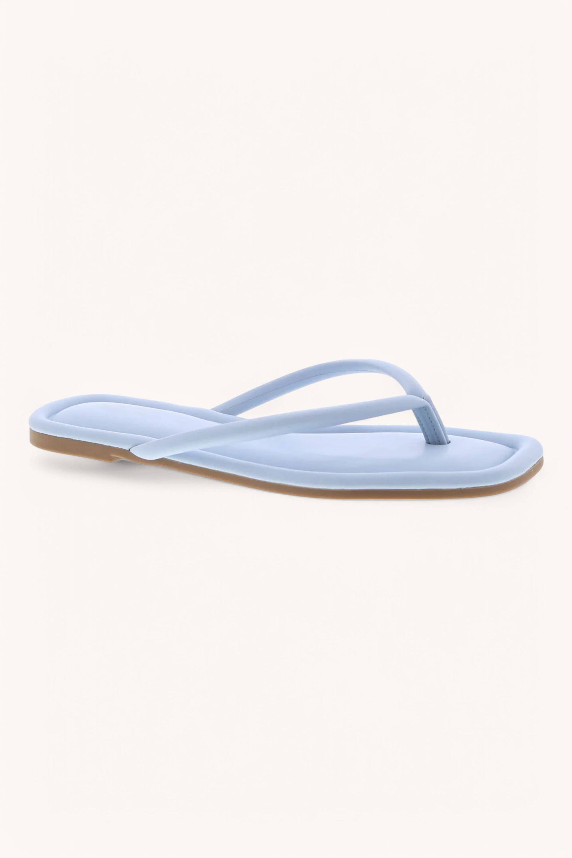 PRISCILLA-5 SQUARE TOE SIMPLE THONG STRAP SANDALS: BEIGE LINEN / B18